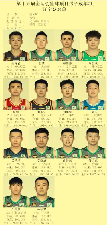 全运会男子篮球成年组小组赛的比赛4号正式开打,辽篮成年组也官宣了最终的13人参赛名单,分别是玄冥二老韩德君和李晓旭、赵继伟、高诗岩、原帅、付豪、周俊成、刘雁宇、王化东、吴昌泽、俞泽辰、鄢手骐和李虎翼,而刘志轩则是以助理教练的身份参加全运会。