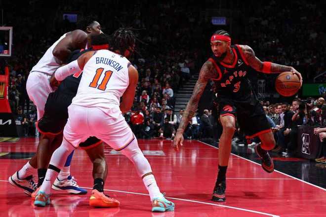 中场休息回来,尼克斯在前2分多钟打出9-2攻势,已经扩大78-54领先24分优势,英格拉姆连中两记三分追分。布伦森三分命中,猛龙一波8-2攻势缩小差距,尼克斯再得4分维持18分优势,尼克斯之后也是继续维持91-73领先优势。猛龙冲击内线追分,三节结束尼克斯94-79领先猛龙。前三节比赛,布伦森17中12命中6记三分得到33分,引领尼克斯5人得分上双,英格拉姆27+6+6引领猛龙4人得分上双。