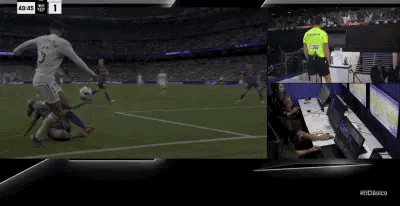 北京时间10月26日,西甲联赛第10轮,巴萨在伯纳乌球场1-2不敌皇马。比赛第50分钟,贝林厄姆突入禁区造成埃里克-加西亚手球,主裁判在回看VAR后判罚点球。在主裁判做出点球判罚后,埃里克-加西亚向身边的阿尔瓦罗-卡雷拉斯抱怨判罚。