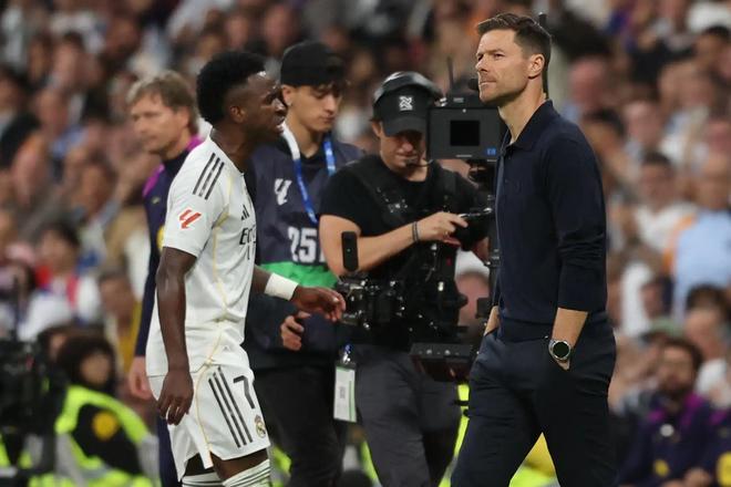 北京时间10月29日,据《世界体育报》报道,维尼修斯与哈维-阿隆索拥抱致意,皇马更衣室内的紧张氛围有所缓解。