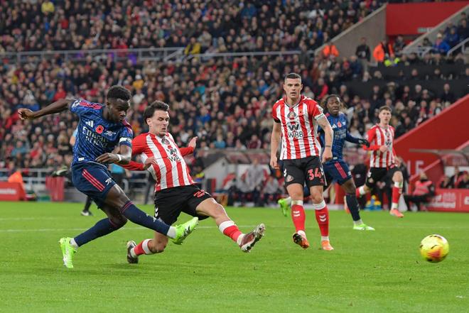 但这还不够。在伤停补时的最后时刻,加布里埃尔和戴维-拉亚双双被布罗贝伊抢到先机,后者以一记精彩的倒钩射门将球打入空网。