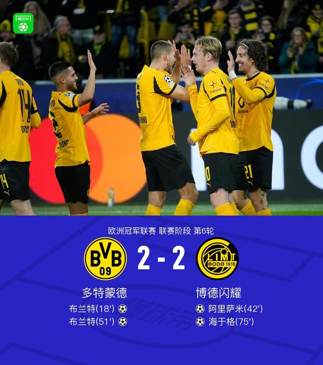 多特蒙德2-2博德闪耀,布兰特双响,阿里萨米、海于格建功